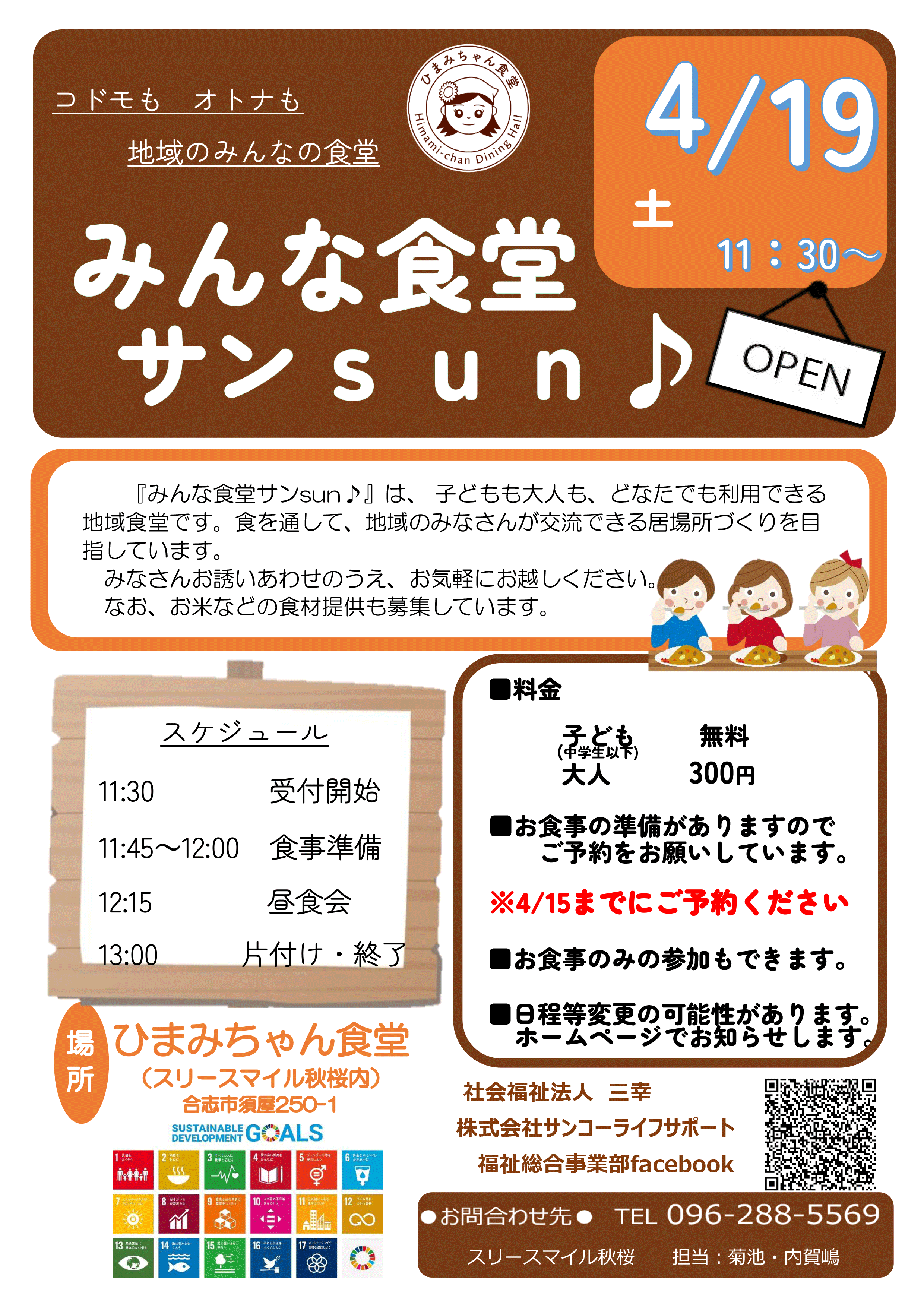 4/19(土)「みんな食堂サンsun♪」開催します!!